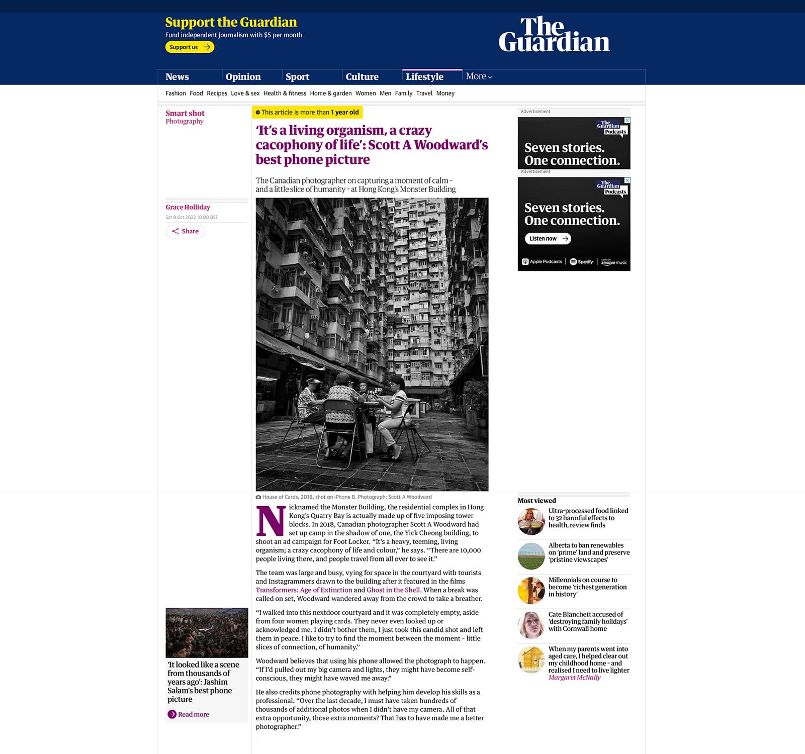 Freelance journalist and content writer, Grace Holliday, contacted me about a regular feature she contributes to The Guardian called "Smart Shot" where professional photographers reveal the best images taken using only their mobile phone. Grace was interested in a photograph I made in 2018 in Hong Kong and I called "House of Cards". This image was awarded an Honourable Mention in the People category at the prestigious iPhone Photography Awards (2019). Following is Grace's story about this photograph and how I made it.