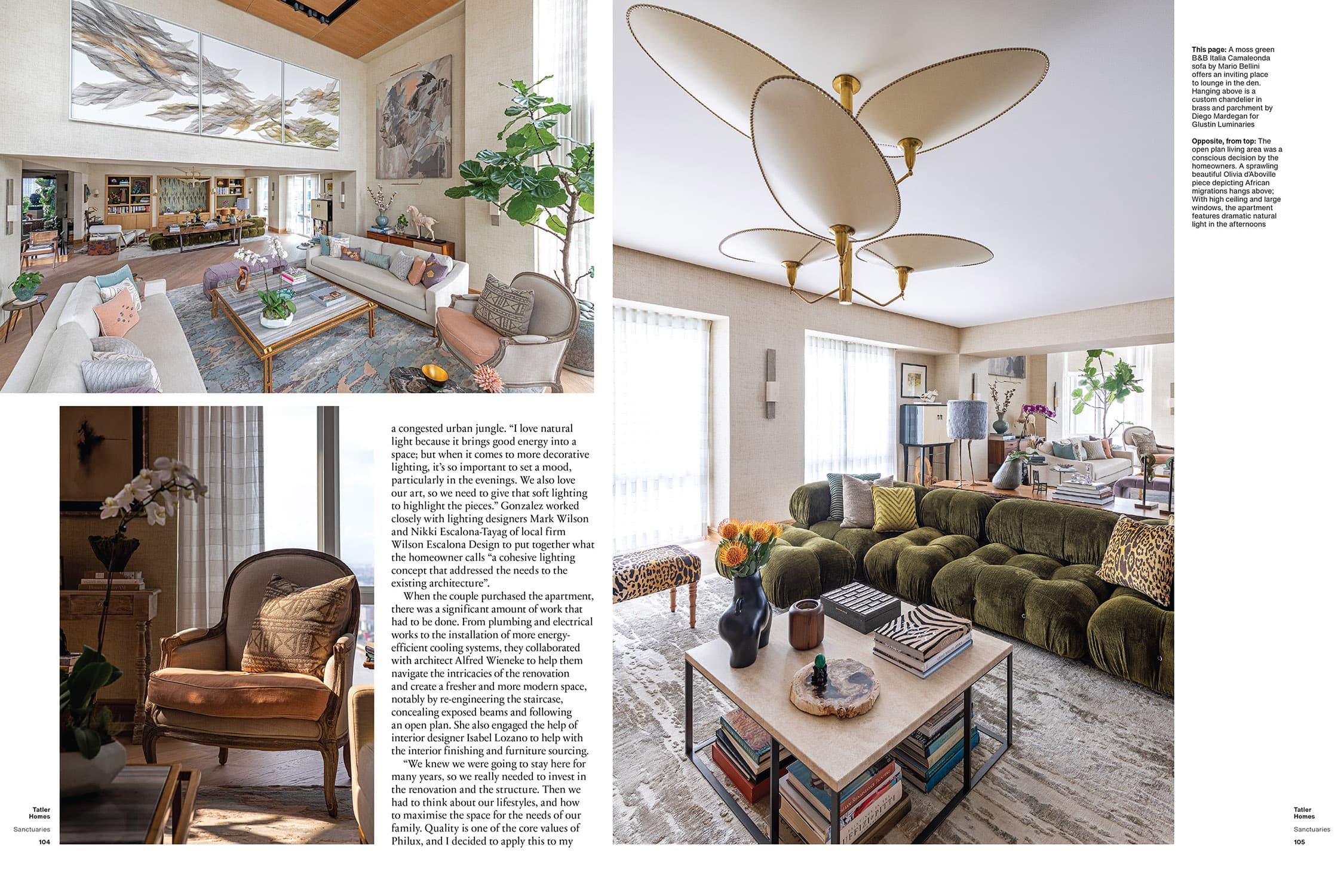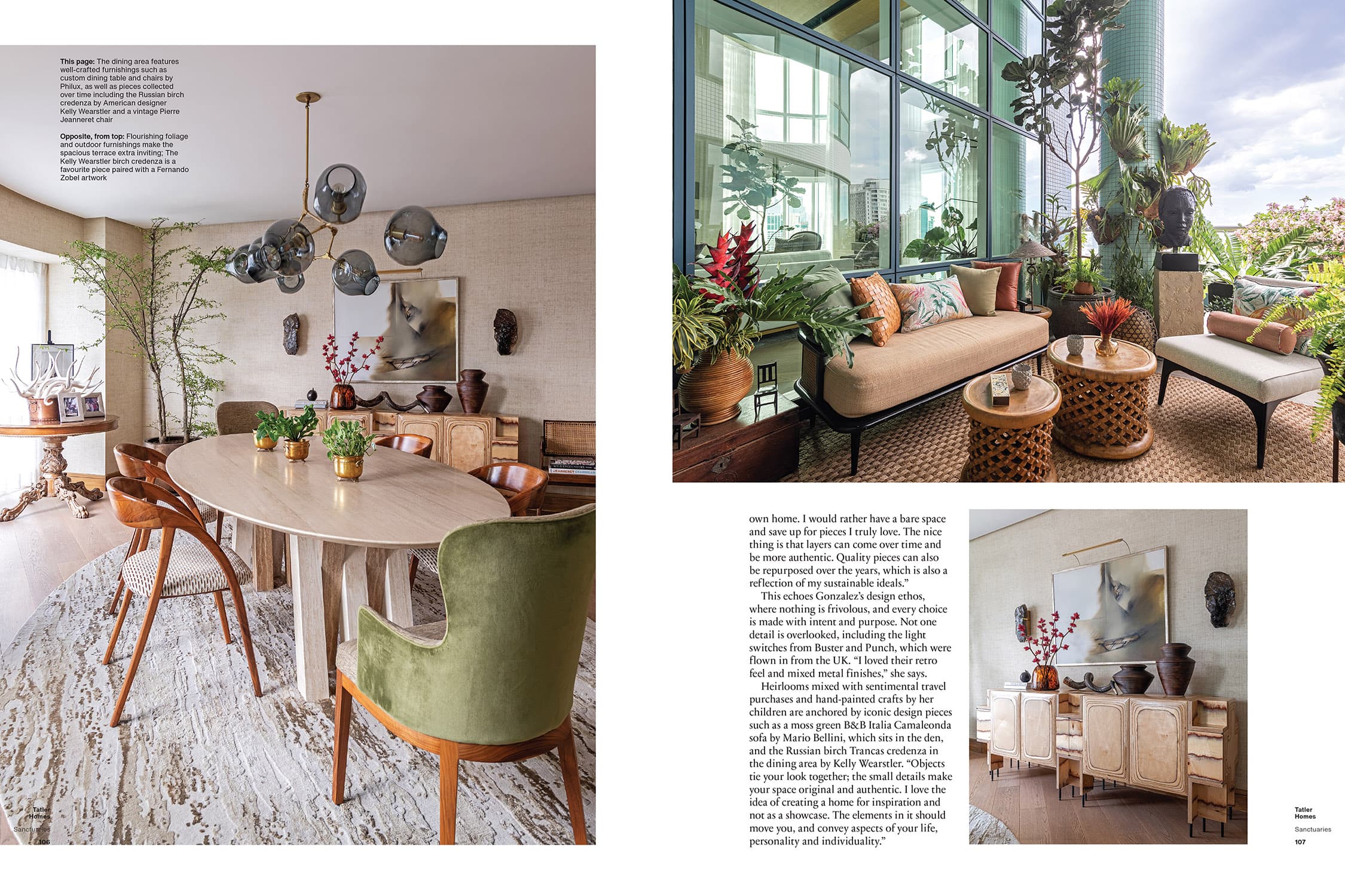 Gonzalez’s unique family apartment in Manila puts nature and sentiment at the core of its design. “A warm and beautiful home is an extension of your identity,” she declares, while explaining, “I find designing a home to be an incredibly creative and tantalising process, putting together the skills of many people to help shape your vision and turn it to reality. Because a home is a sacred, personal space that grows and evolves with your life story, where you can be your truest self, where you feel at peace — inspired and surrounded by the things and people you love.”