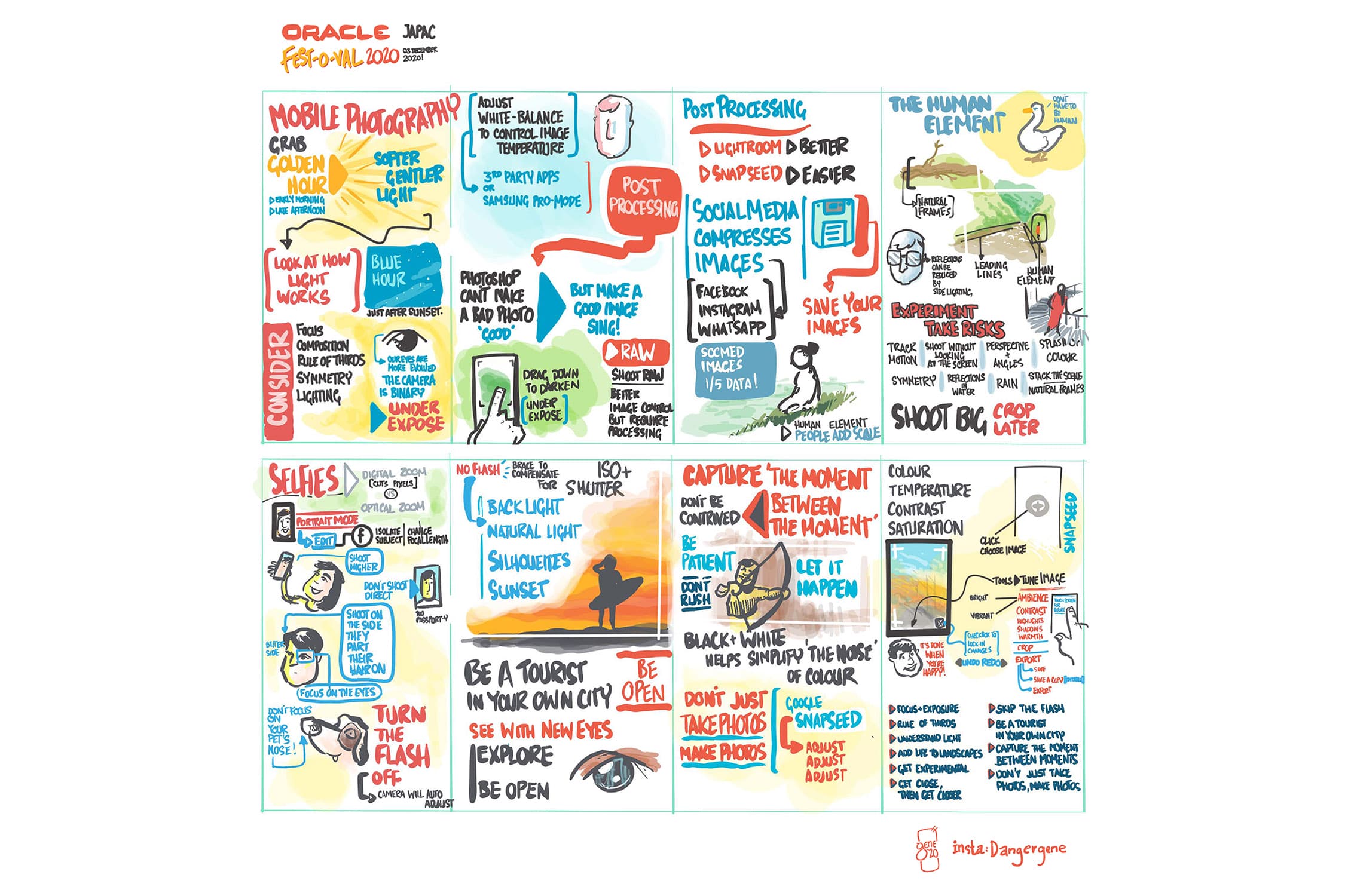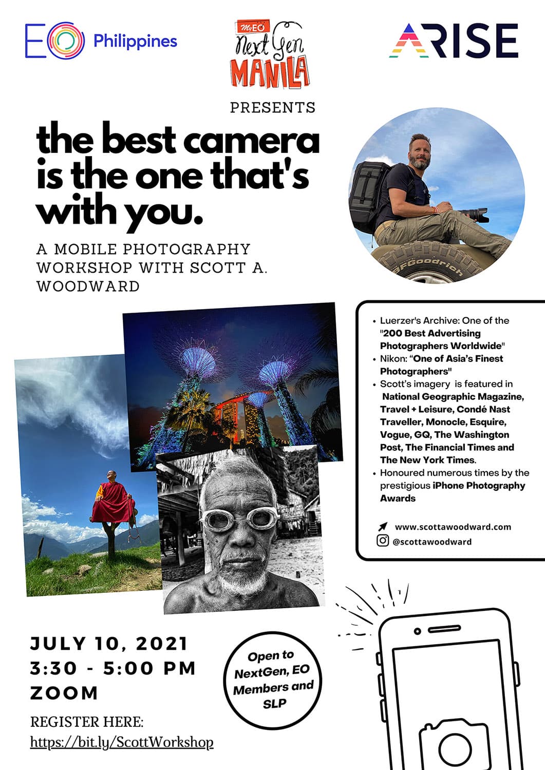 During this engaging 90-minute workshop, I share my top 10 demonstrable tips, tricks, insights and hacks to help move participants’ mobile photography from good to great. And the final experience is an interactive editing lesson where attendees are guided through a real-time retouching session using only their mobile devices.