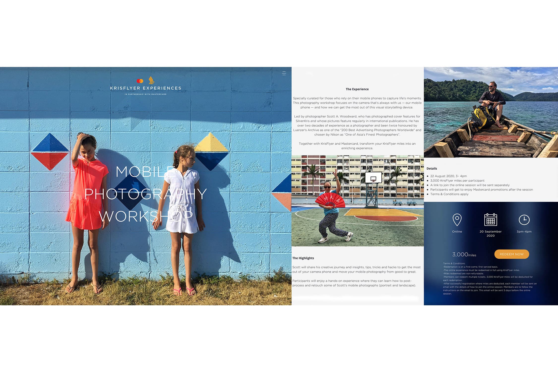 And shortly after this I was commissioned by Singapore Airlines’ KrisFlyer Experiences — a collaboration between the airline and Mastercard designed to offer the airline’s frequent fliers ways in which to transform their air miles into experiences — to deliver a series of interactive online mobile photography workshops for their members.