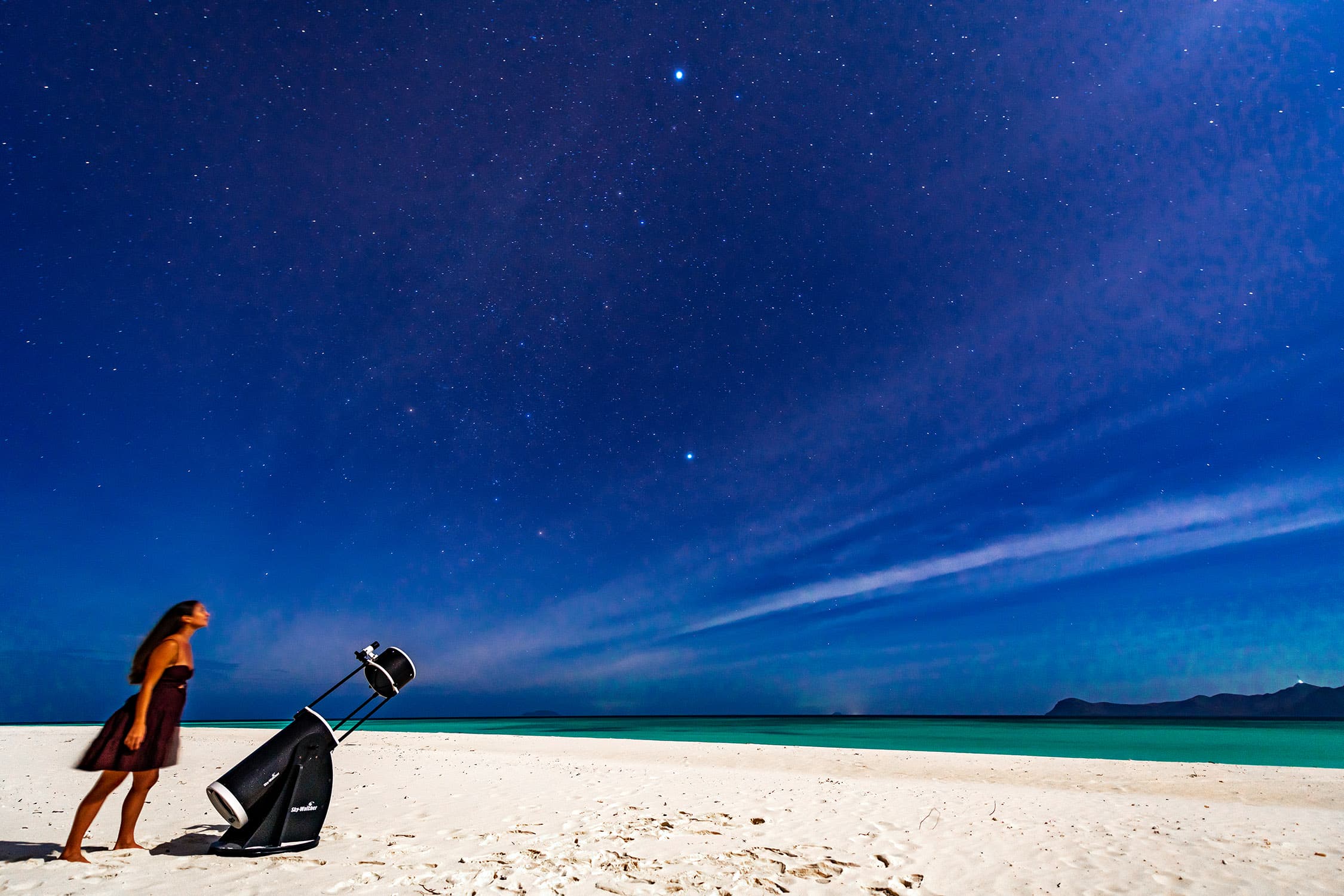 “My toes dig into the powdery, white sand as I look across an inky blue, glittering and illuminated by an achingly bright waxing gibbous moon, I can’t help but feel as though all the stars in the sky had spilled over to the sea. At night, the island’s crystalline, turquoise waters and sunny tropicalia turns into an otherworldly place, one that is cool, serene, and almost enlightening.