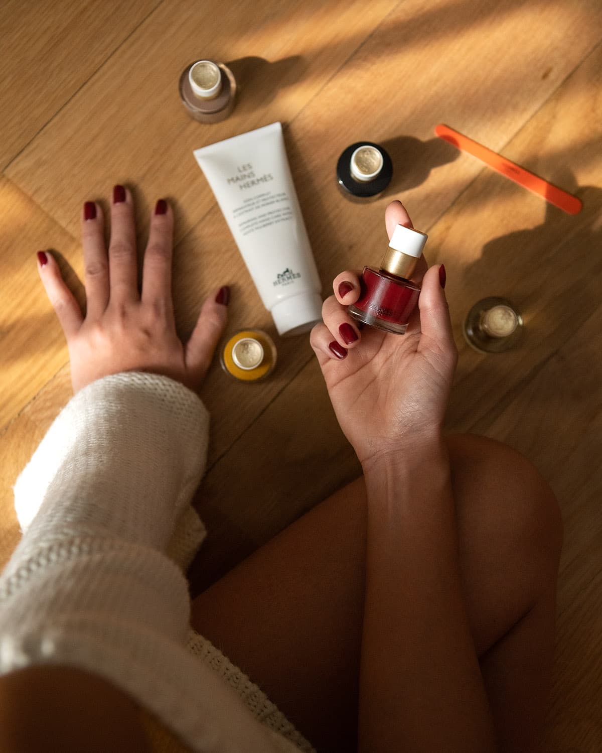 Soft window light lends a dreamy and intimate feel to this campaign for the launch of Hermès Beauté’s nail care and nail polish line of the luxury French brand.