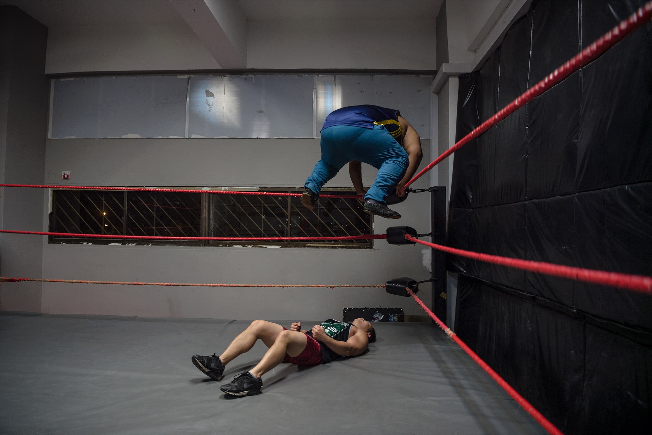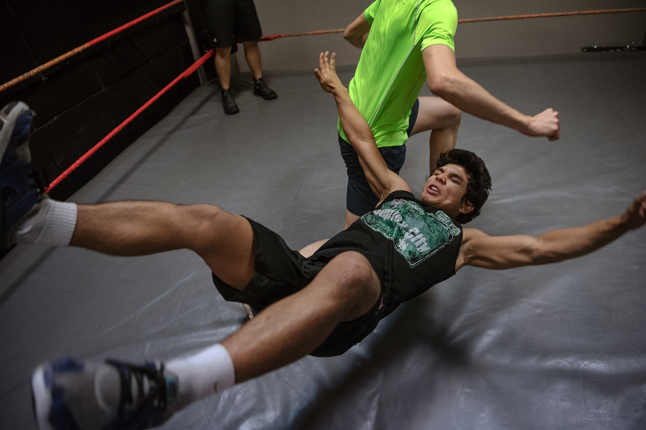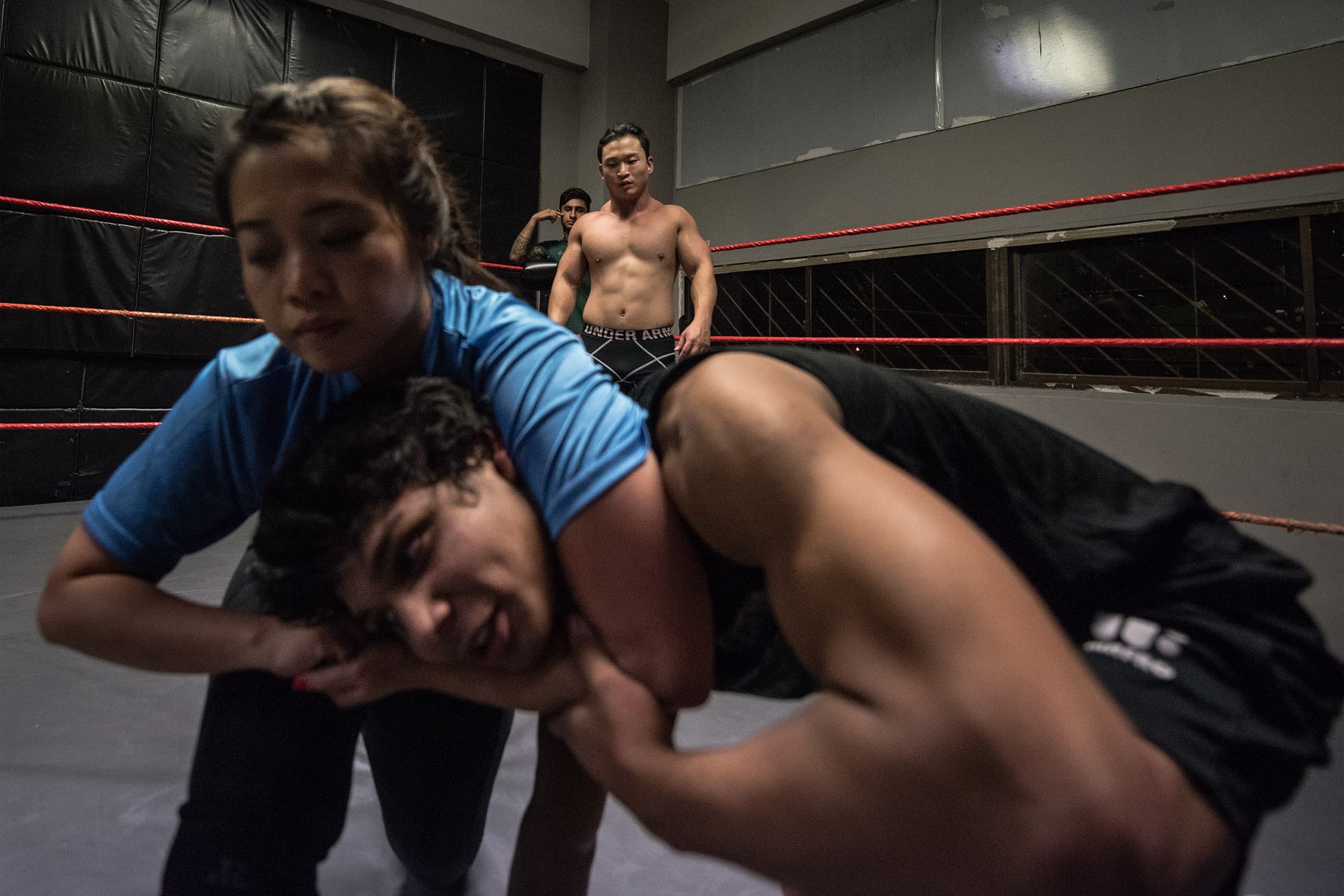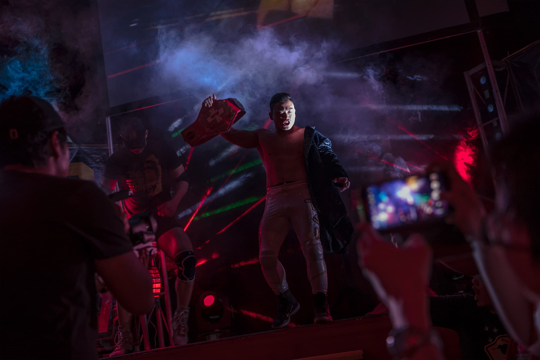 During several months spent documenting training and rehearsals at a cramped industrial estate, witnessing backstage preparations and the scrappy, energetic shows that followed, we discovered what drives these otherwise unassuming individuals, hailing from one of Asia’s most conservative countries, to don lycra and make-up and seek their 15 minutes of fame within the staged (but still, often blood-splattered and bone-shattering) spectacle of Singapore Pro Wrestling.