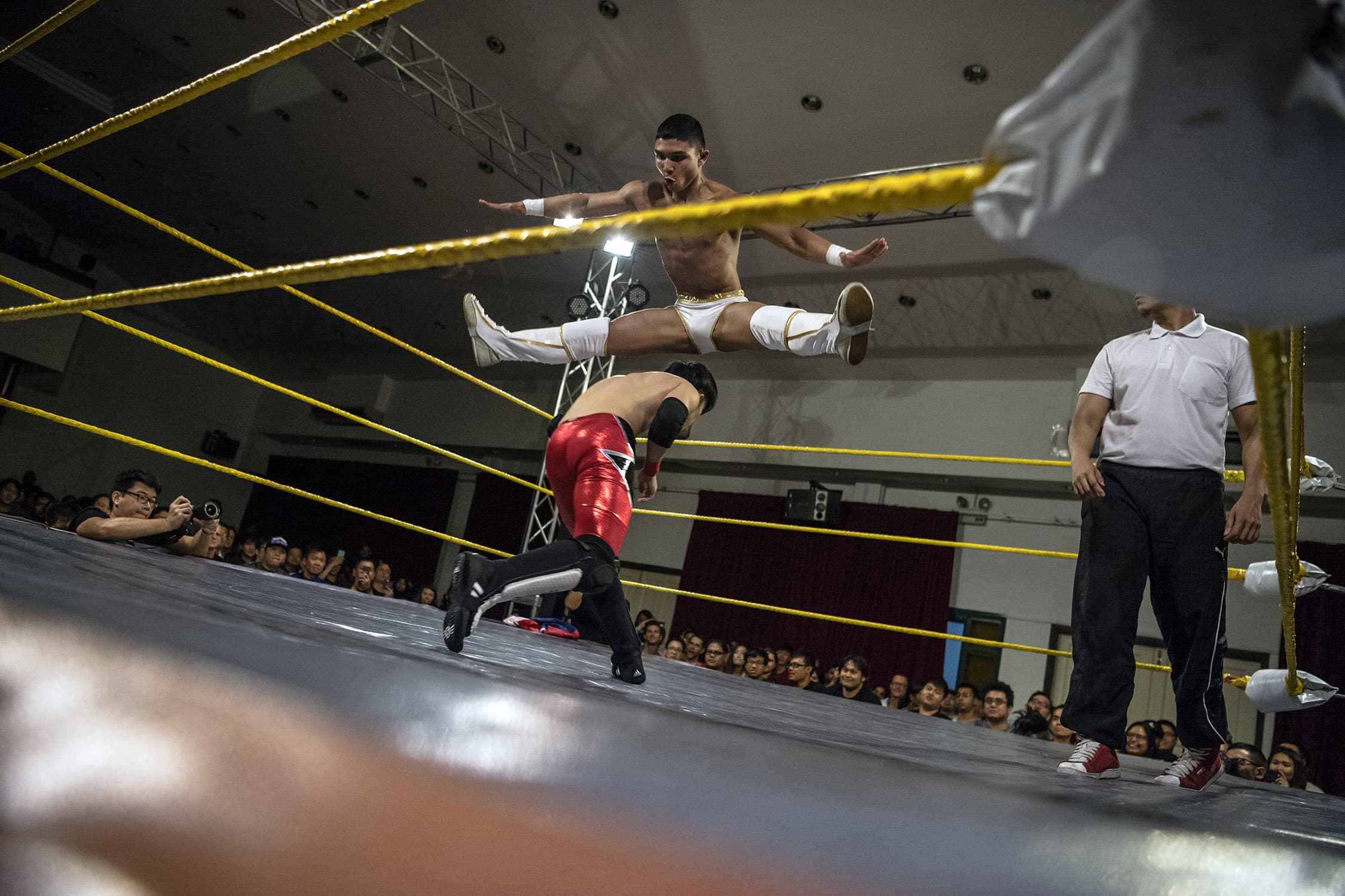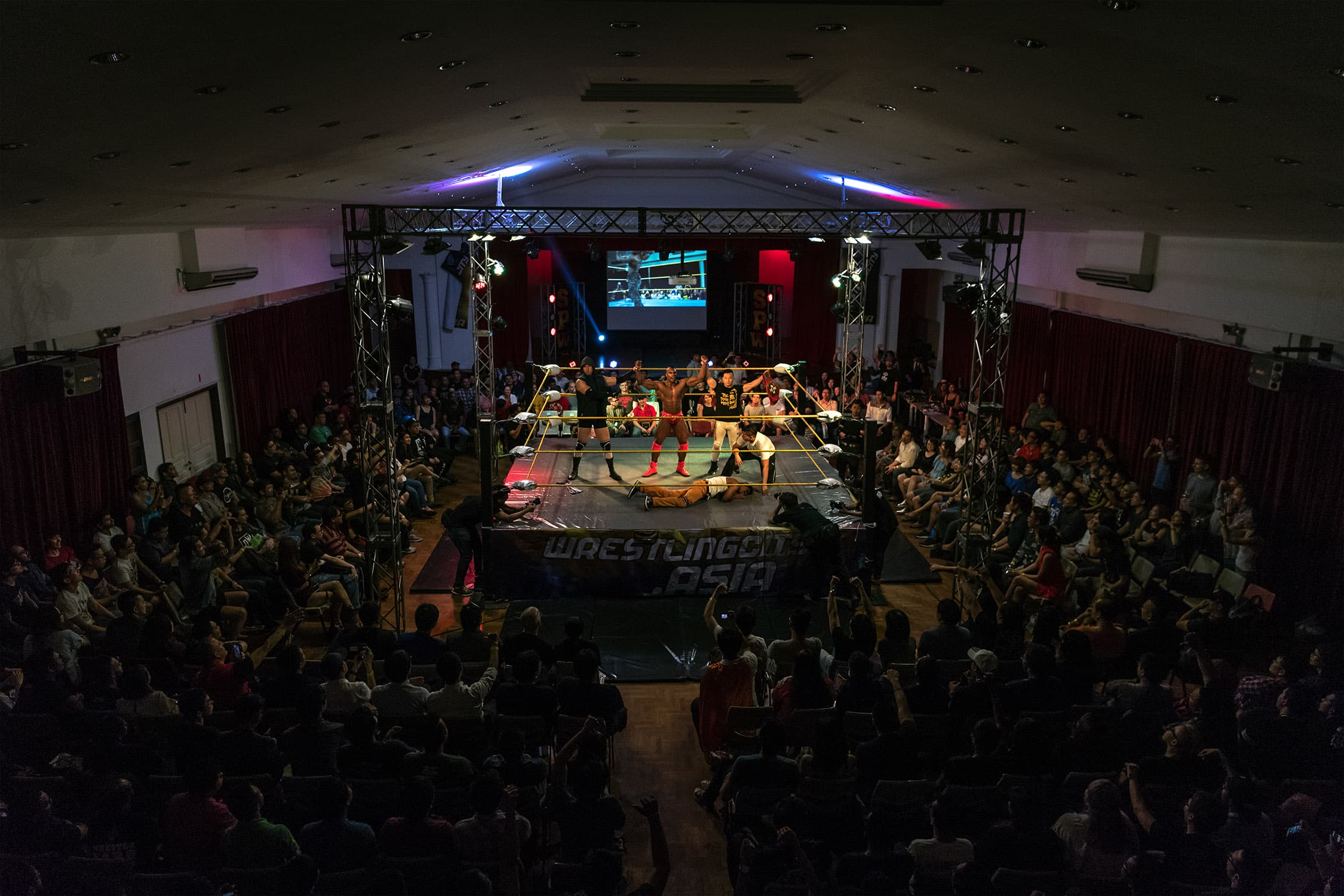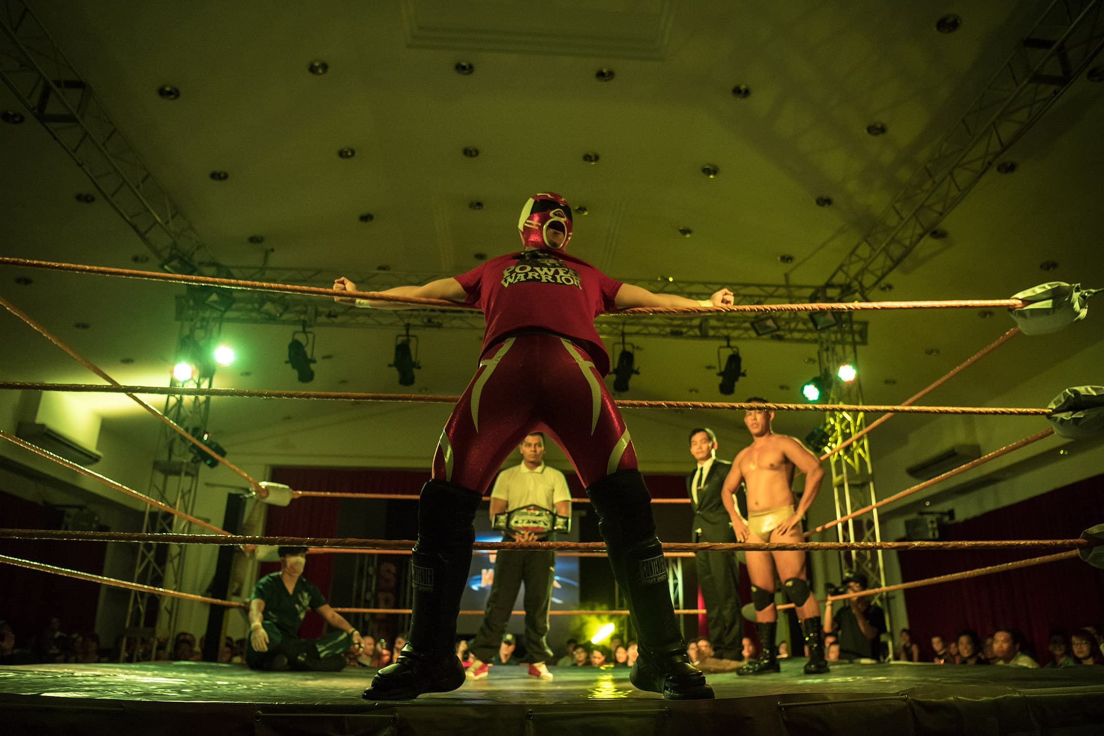 Singapore Pro Wrestling (SPW) was founded in 2012 by Russian trainer Vadim Koryagin and shredded Singaporean wrestler Andruew ‘The Statement’ Tang. Over the past five years, Tang has assembled an enthusiastic group of characters to participate in this lo-fi, scrappy Southeast Asian take on the slickly choreographed, stadium ‘wrestling entertainment’ pioneered in the United States.