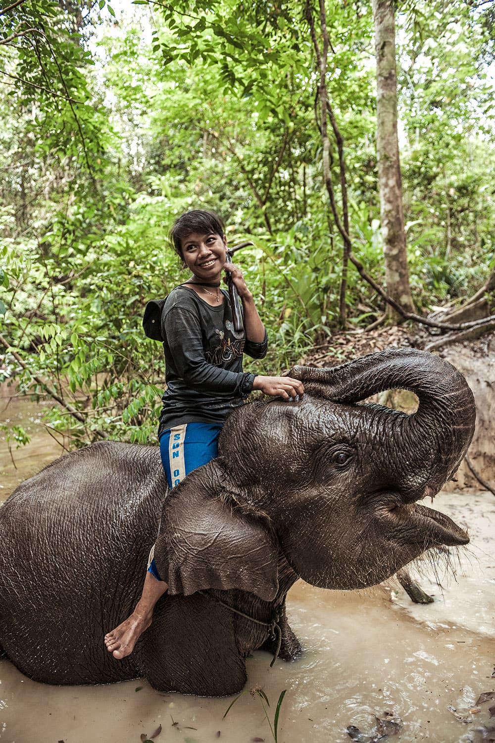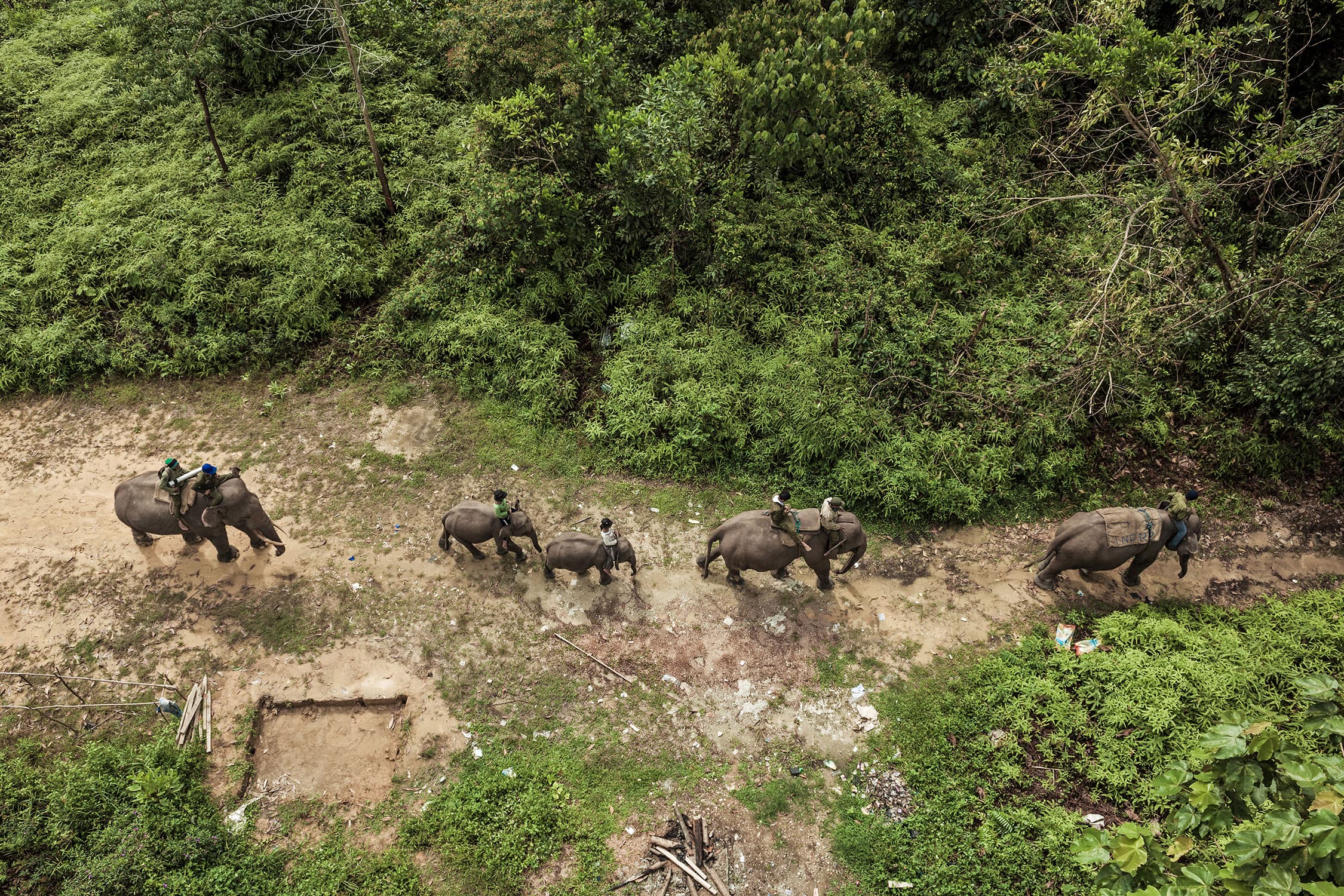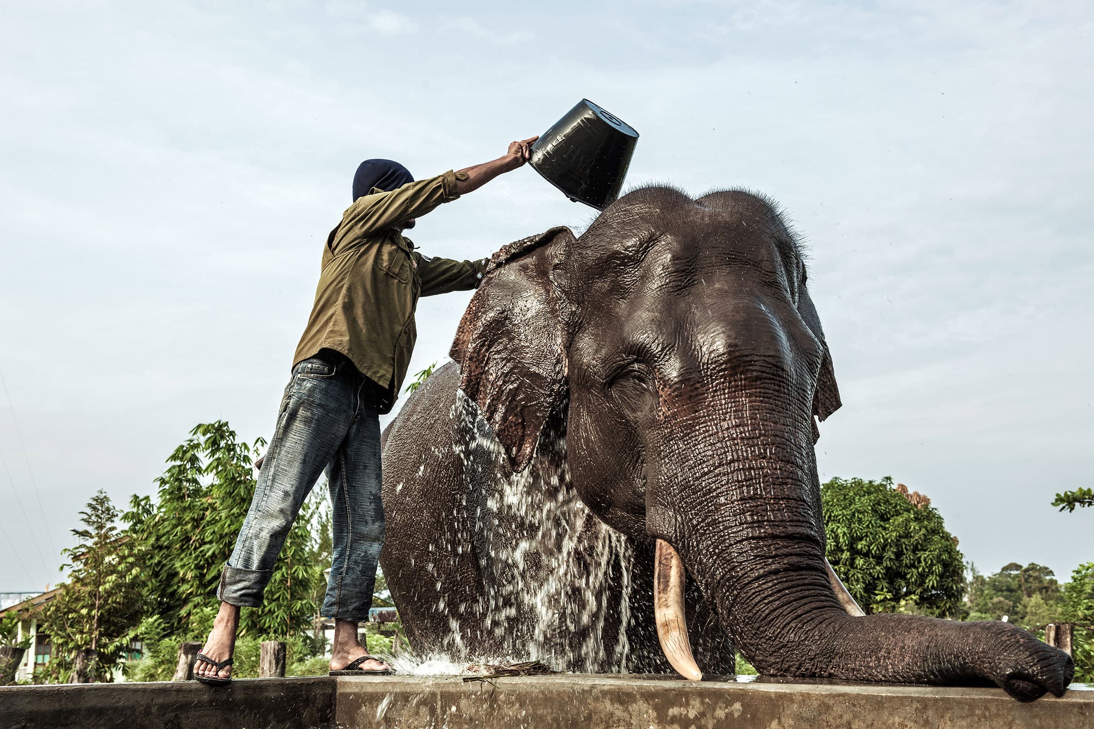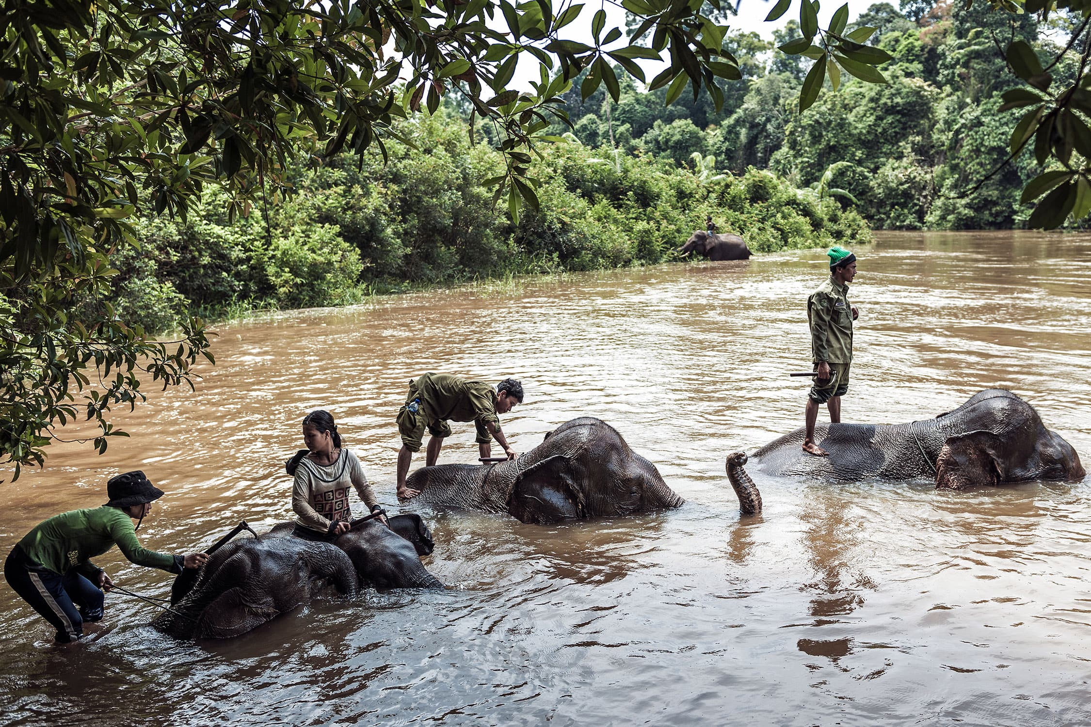 Deep inside the Indonesian rainforest of central Sumatra lives the Tesso Nilo Elephant Flying Squad. This group of seven domesticated elephants and their 11 specially trained mahouts are operated by the World Wildlife Fund (WWF) in collaboration with Indonesia’s Ministry of Forestry. The squad’s mission is to provide a secure haven for Riau Province’s largest remaining wild elephant population. Elephant numbers have declined in Riau from more than 1,600 in 1985 to as few as 350 today, about 150 of which live in Tesso Nilo National Park. By patrolling the fringes of the park, the squad helps prevent wild elephants from invading farms and villages — where they can cause immense damage and run the risk of being injured or killed by angry farmers and villagers — by carefully driving them back into the jungle. The Elephant Flying Squad is in constant battle to bring harmony to the local environment by mitigating human-elephant conflict. And, so far, this supersize security patrol appears to be winning.